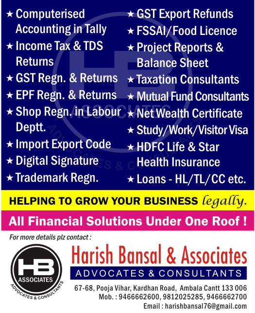 Comprehensive range of services we provide : Returns filing (Income Tax & GST), Business Registration, Trademark Regn., Digital Signature, Mutual funds Investment, PAN/TAN, TDS Returns, Health Insurance & Term Plan and many more